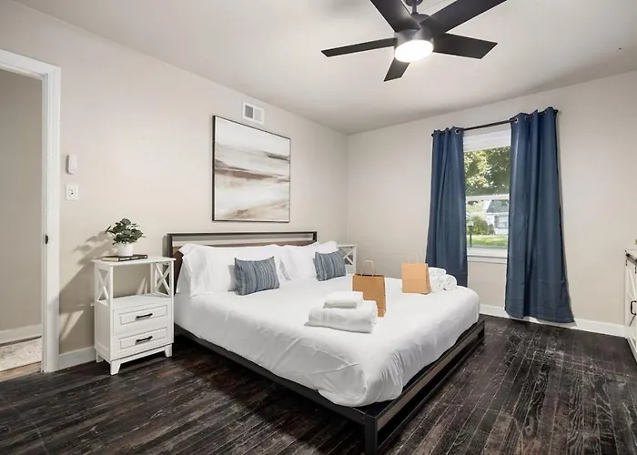 La casa de vacaciones se encuentra a 5 km del aeropuerto regional de Greater Peoria y a unos 10 minutos en coche de puntos de interés cultural como Peoria Asylum. Los huéspedes pueden visitar Creve Coeur Christian Church, que está a 3,1 km de esta villa, o visitar el Centro de Arte Speakeasy, que está a 7 km. Situada a unos 15 minutos en coche de First Christian Church, la Villa Peaceful Park Living - 3Bd 10Mins To Dt Peoria es uno de los destinos favoritos de fieles y turistas.